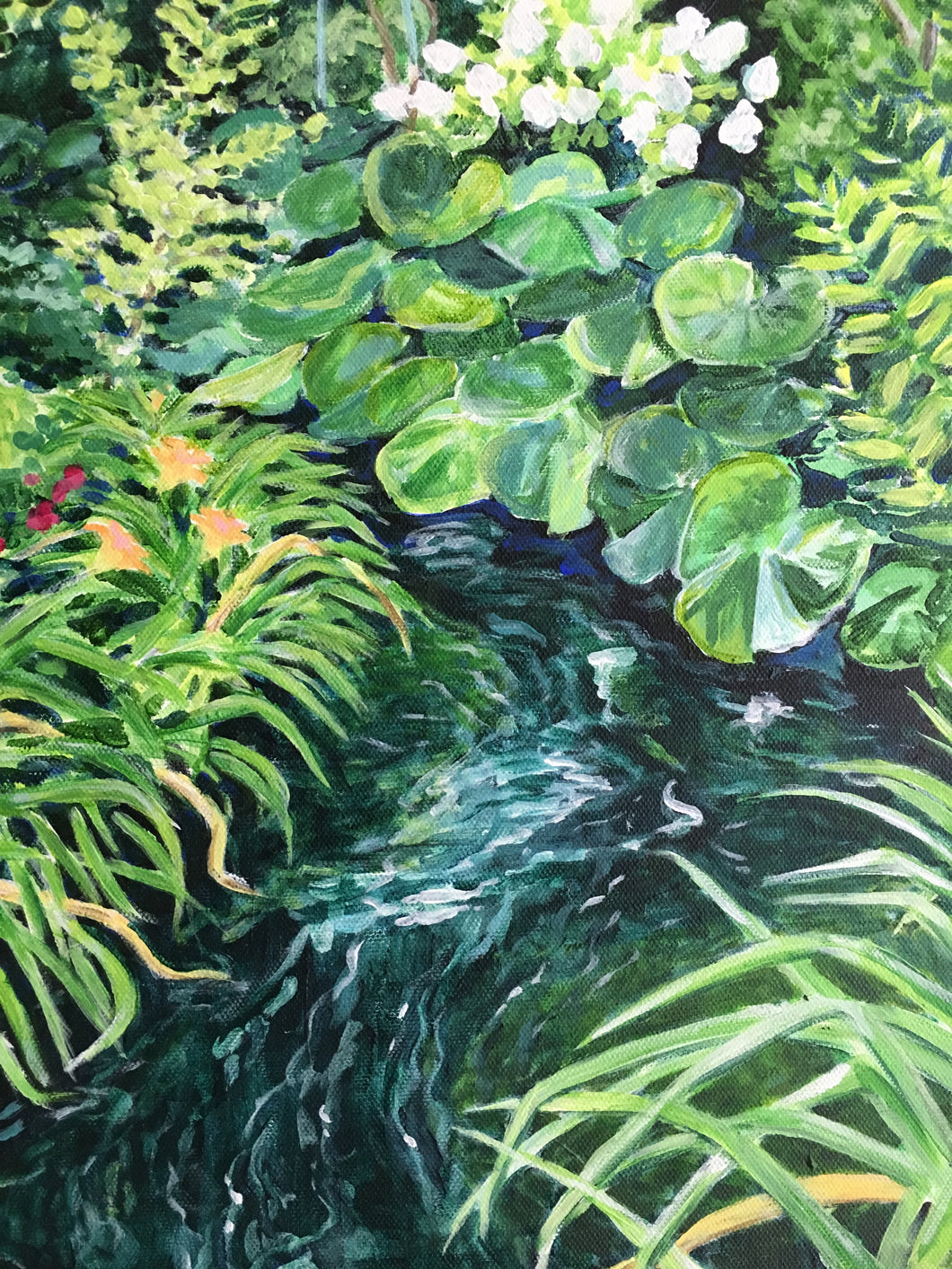 This is an original piece created with acrylic paint on a stretched canvas. The sides are painted white and it is signed by Elise. Colors may vary slightly in person and are shipped via UPS from Charleston, South Carolina