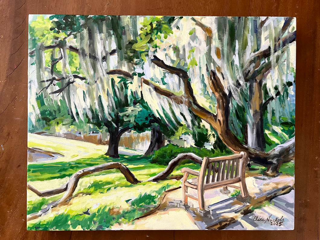This is an original piece created with oil paint on stretched canvas.  The painting wraps the edge of the canvas, and it is signed by Elise.  Care has been taken to accurately photograph the painting, though colors may vary slightly in person.  All pieces are shipped via UPS from Charleston, South Carolina