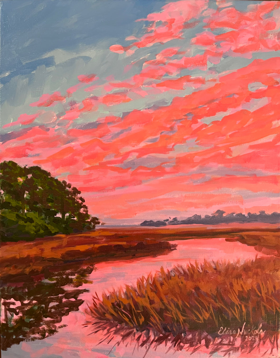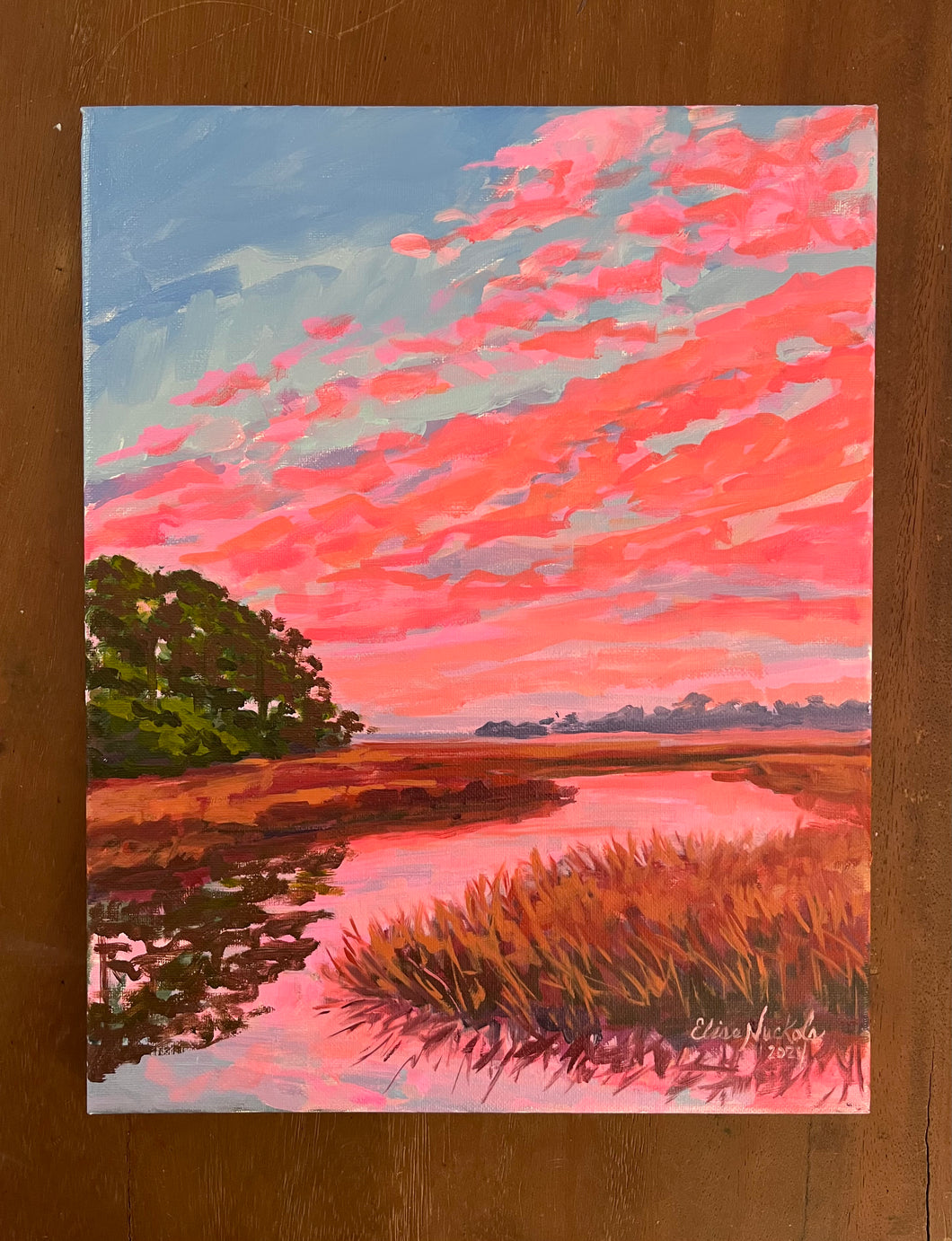This is an original oil painting on stretched canvas.  The painting wraps the sides of the canvas and it is signed by Elise.