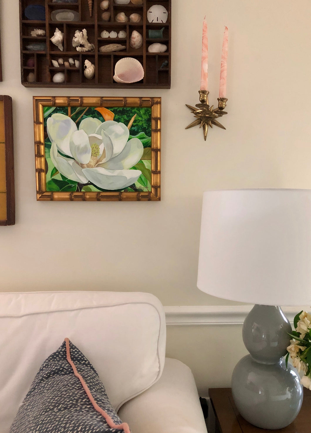 This is an original piece created with oil paint and oil pastel on stretched canvas. The sides are painted white and it is signed by Elise. Colors may vary slightly in person and all pieces are shipped via UPS from Charleston, South Carolina