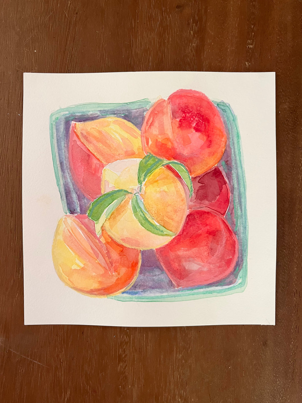 This painting is made with watercolor, gouache, and soft crayon on heavy cold-pressed watercolor paper.
