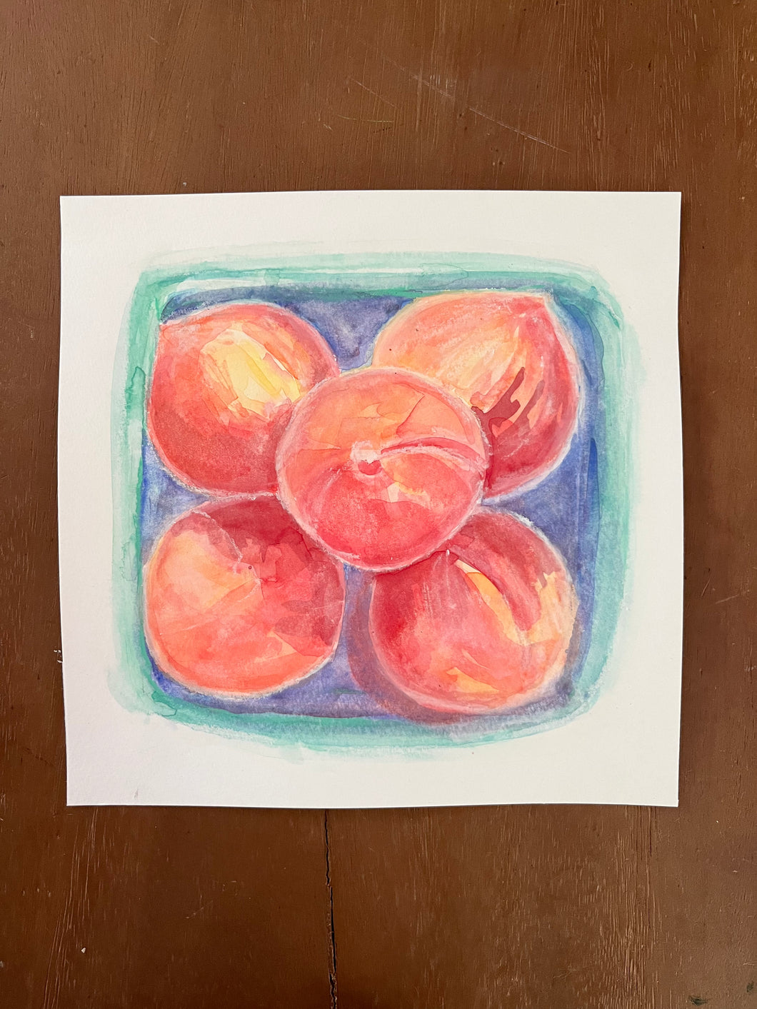 This painting is made with watercolor, gouache, and soft crayon on heavy cold-pressed watercolor paper.