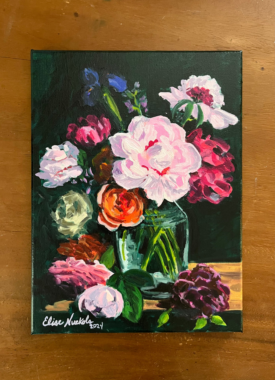 This is an original piece created with oil paint on stretched canvas.  The painting wraps the edge of the canvas, and it is signed by Elise.  Colors may vary slightly in person and all pieces are shipped via UPS from Charleston, South Carolina