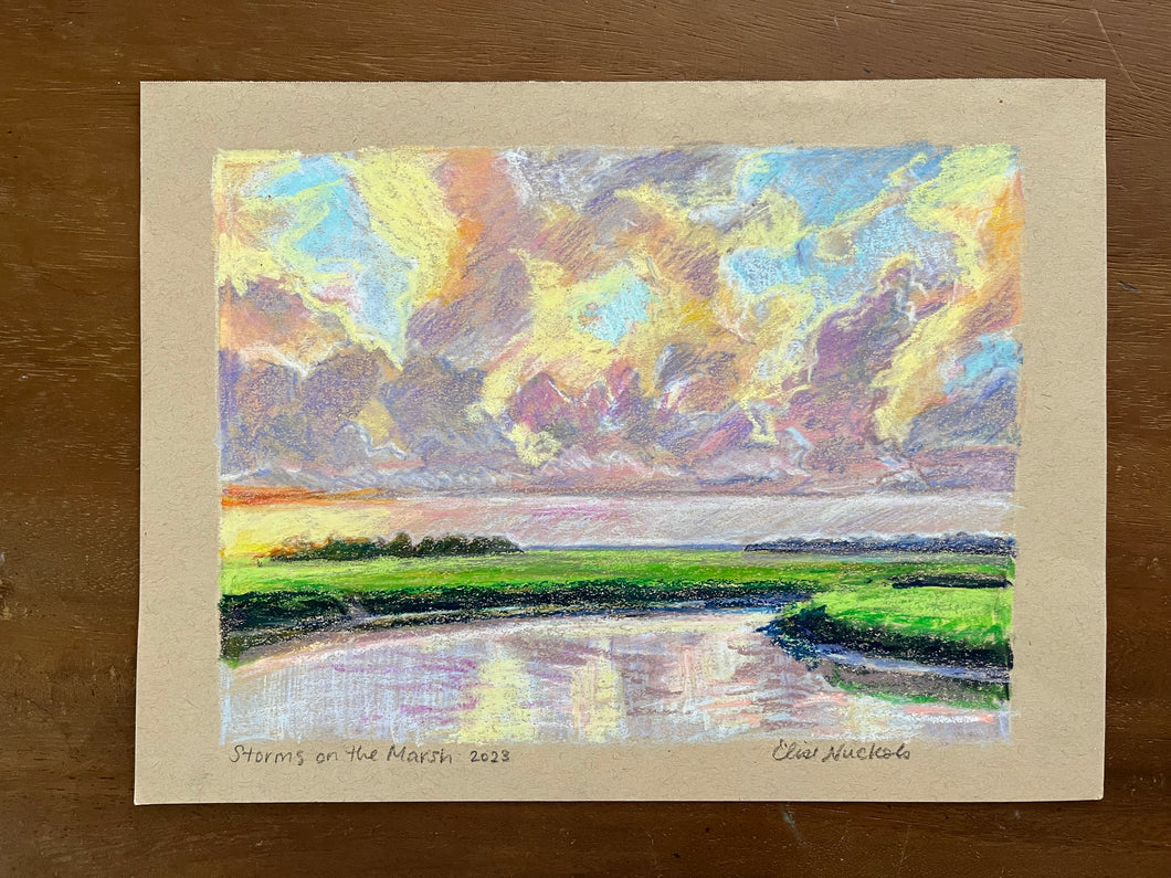 This drawing is made with oil pastel and soft crayon on unbleached toned paper. Care has been taken to carefully capture the colors in the photograph- but they may vary slightly in person. All pieces are shipped from Charleston, SC via UPS.