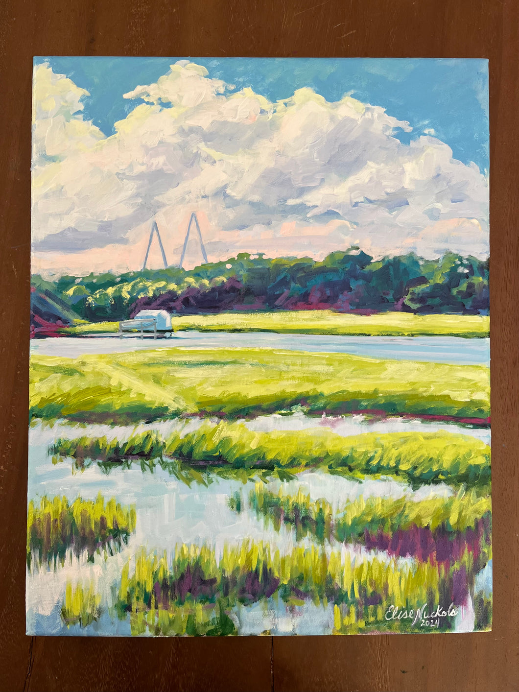 This is an original oil painting on stretched canvas.  The painting wraps the sides of the canvas and it is signed by Elise.