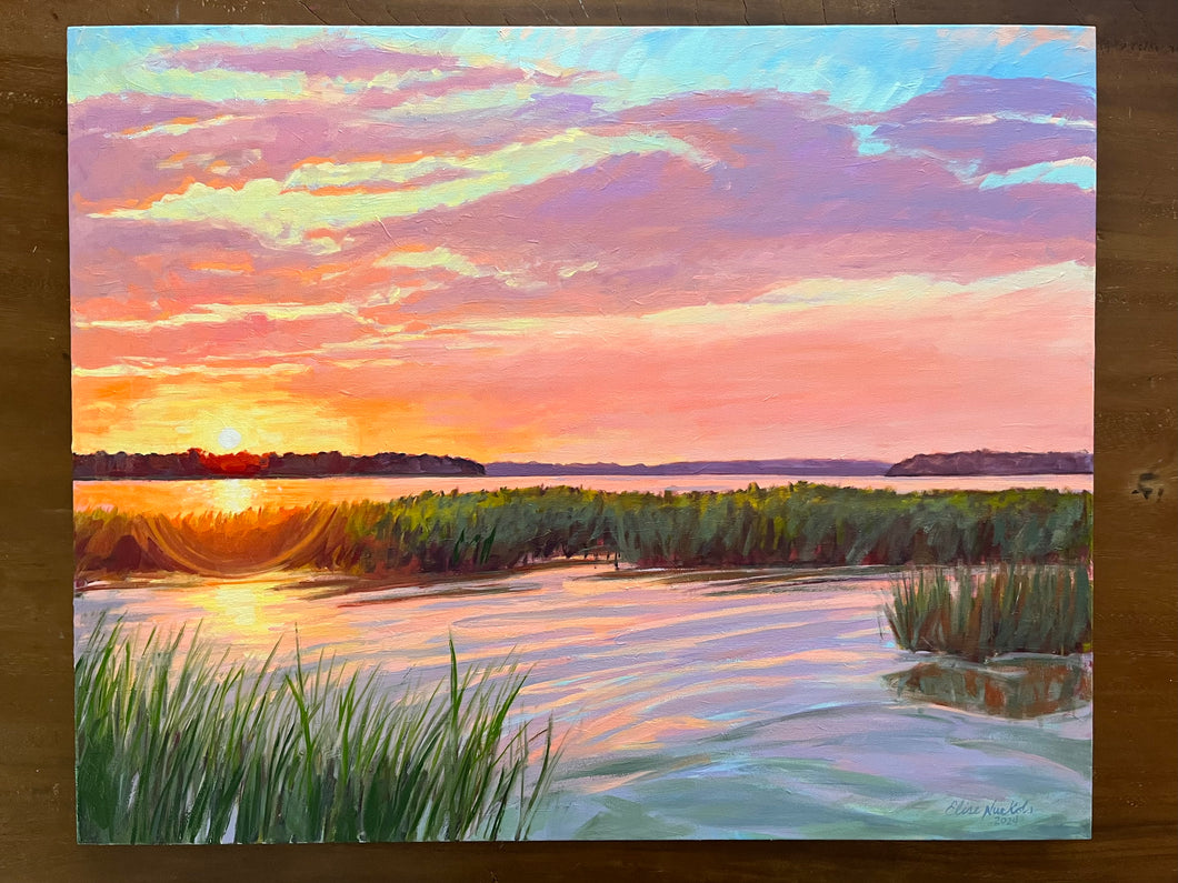 This is an original oil painting on stretched canvas. The painting wraps the sides of the canvas and it is signed by Elise.