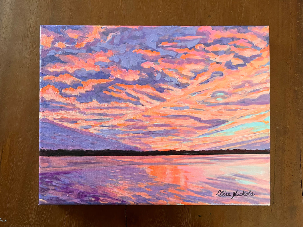 This is an original piece created with oil paint on stretched canvas.  The painting wraps the edge of the canvas, and it is signed by Elise.