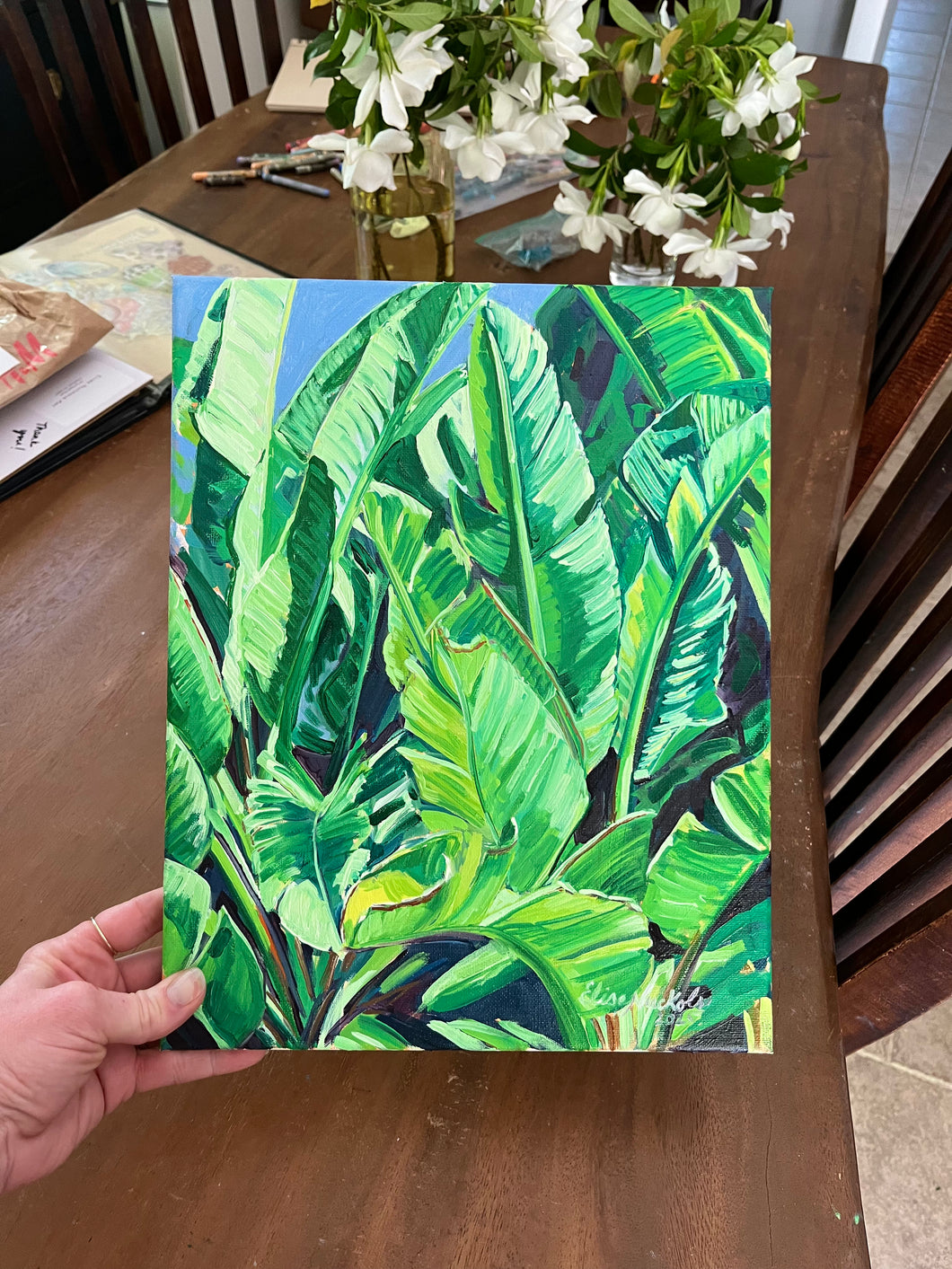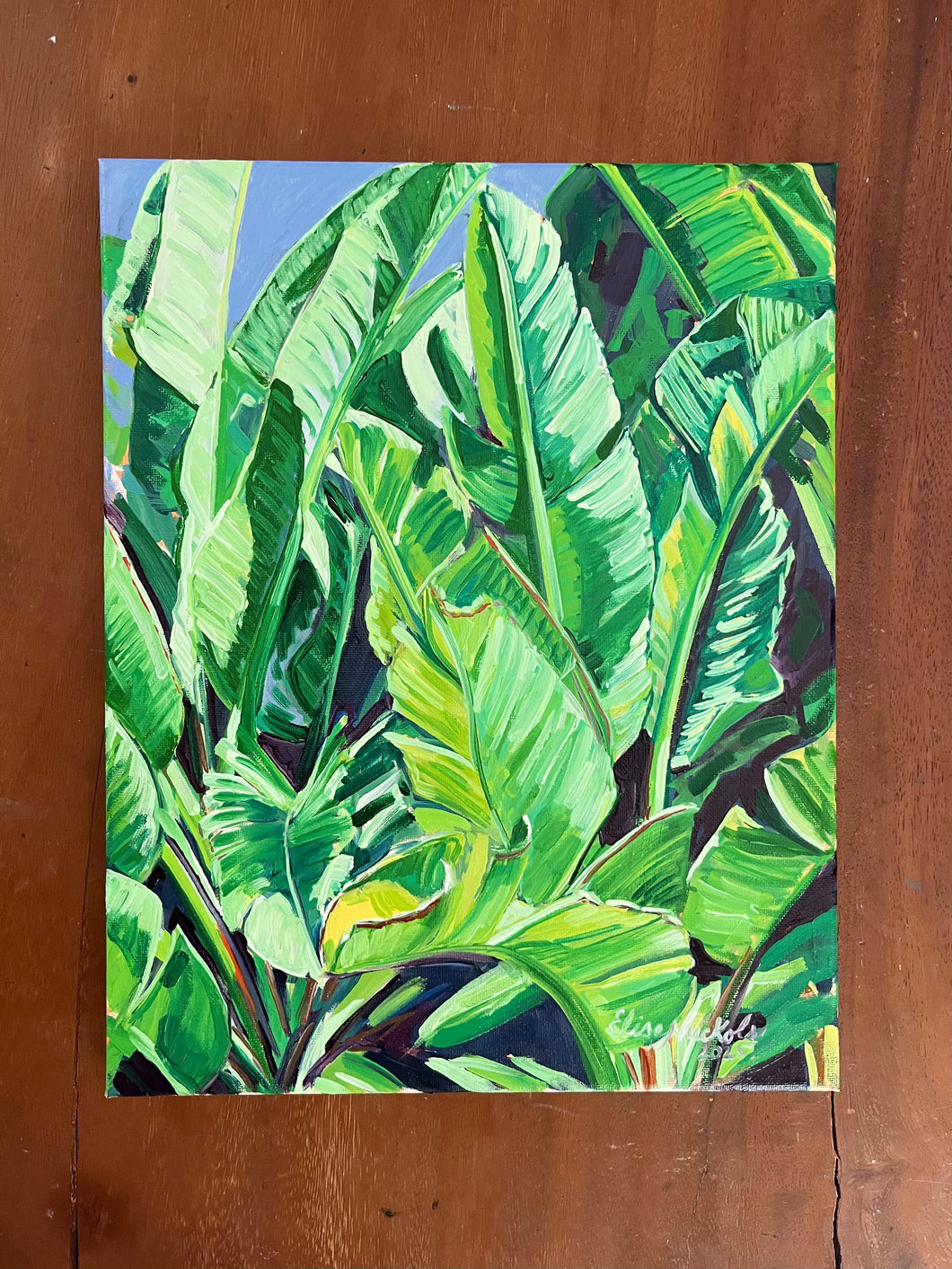 This is an original oil painting on stretched canvas. The painting wraps the sides of the canvas and it is signed by Elise.